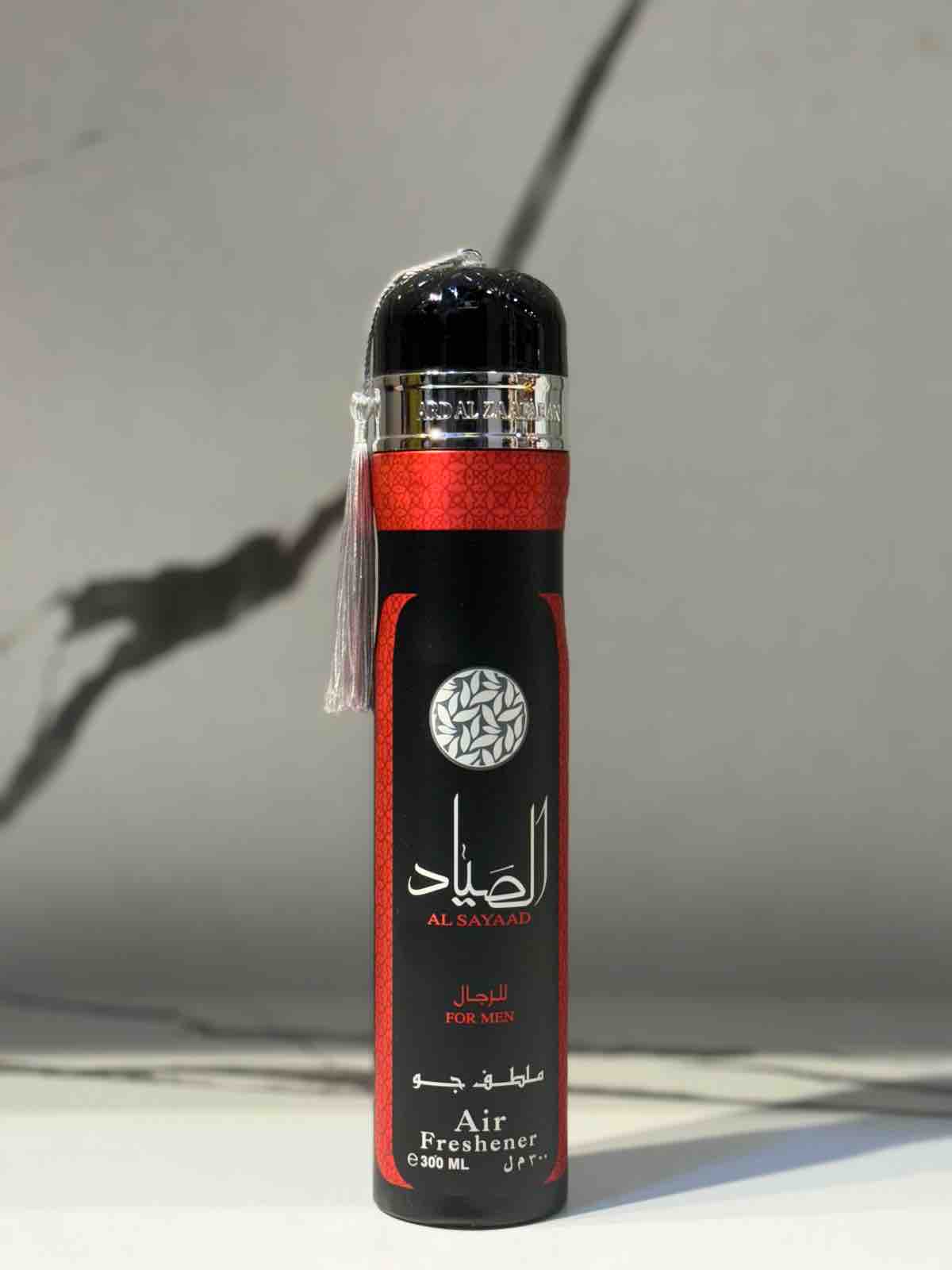This is Al Sayaad Air Freshener for Men (300ml) — a bold, masculine fragrance housed in a sleek black and red canister with silver detailing and a decorative tassel. Crafted to infuse your space with a strong, refreshing scent, it adds an air of elegance and vitality tailored especially for men.